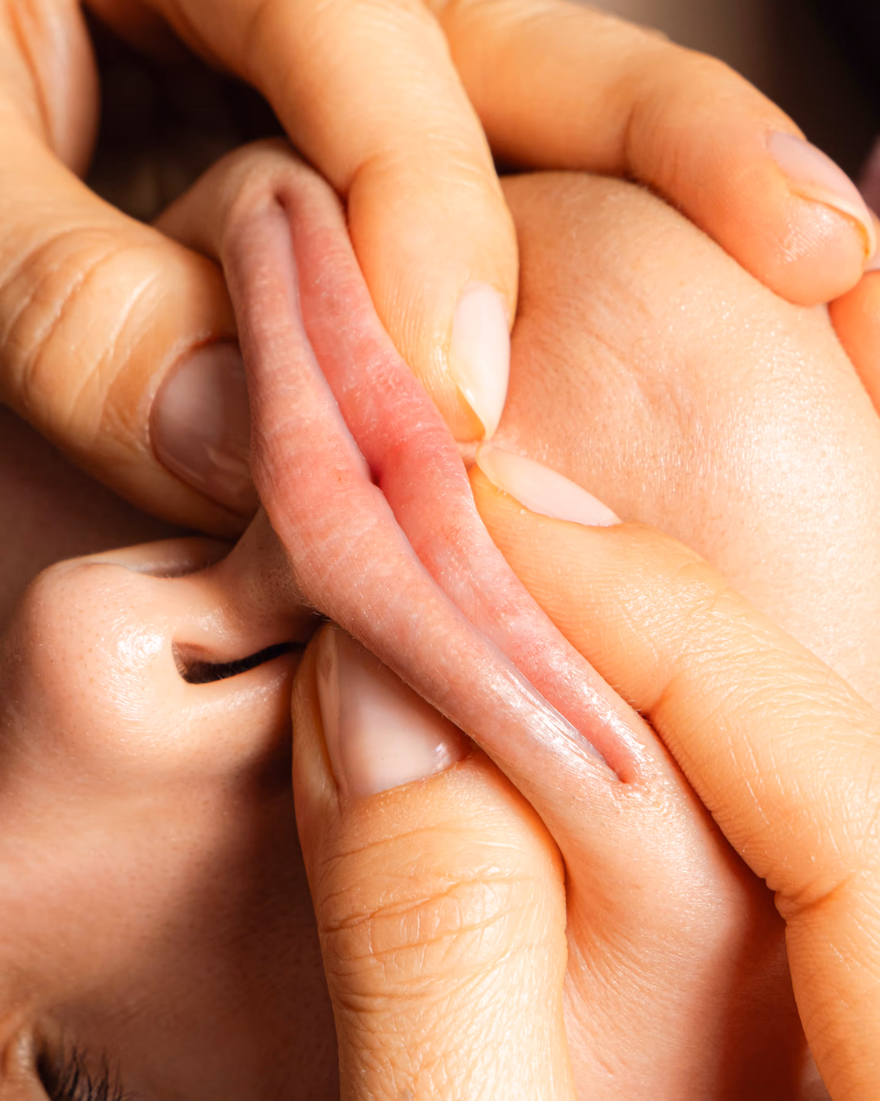We work from the roots of the face using non-invasive manual methods that activate circulation, awaken muscles, release fascia, and restore structural support.